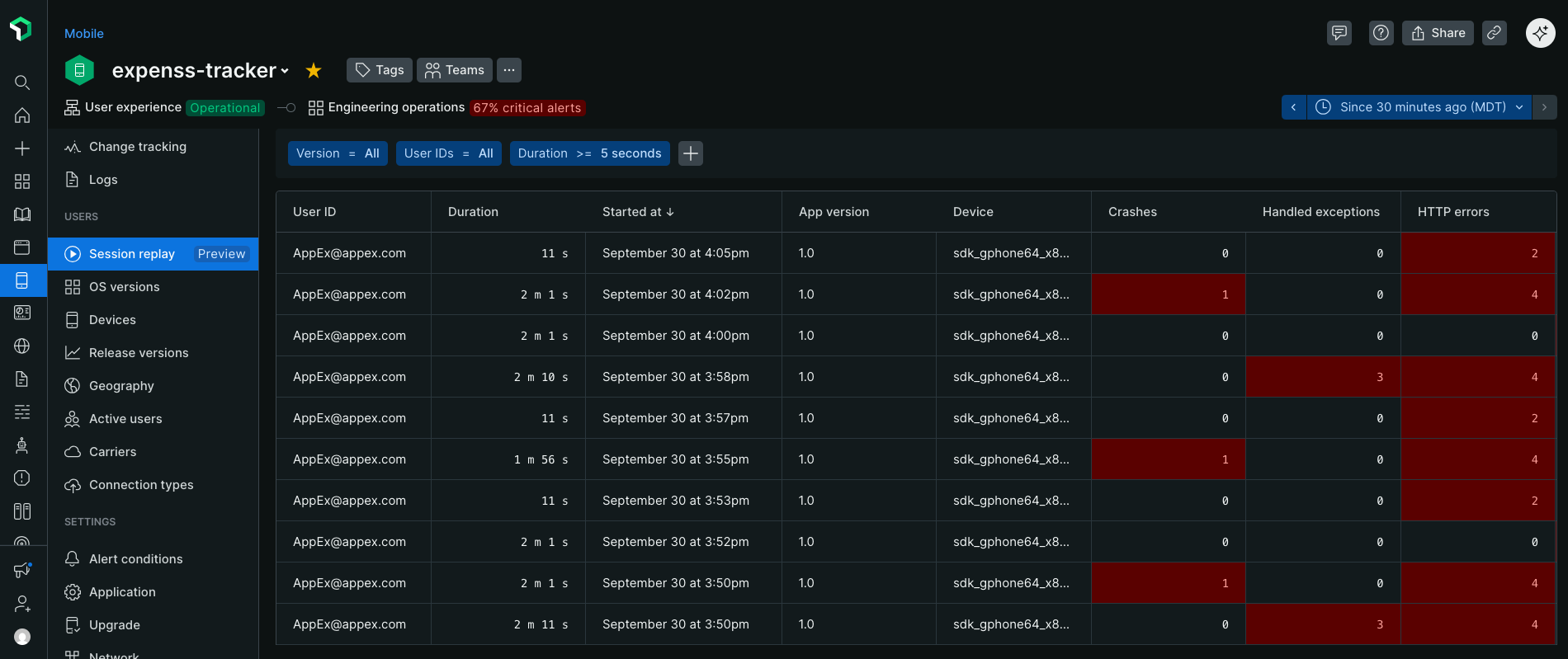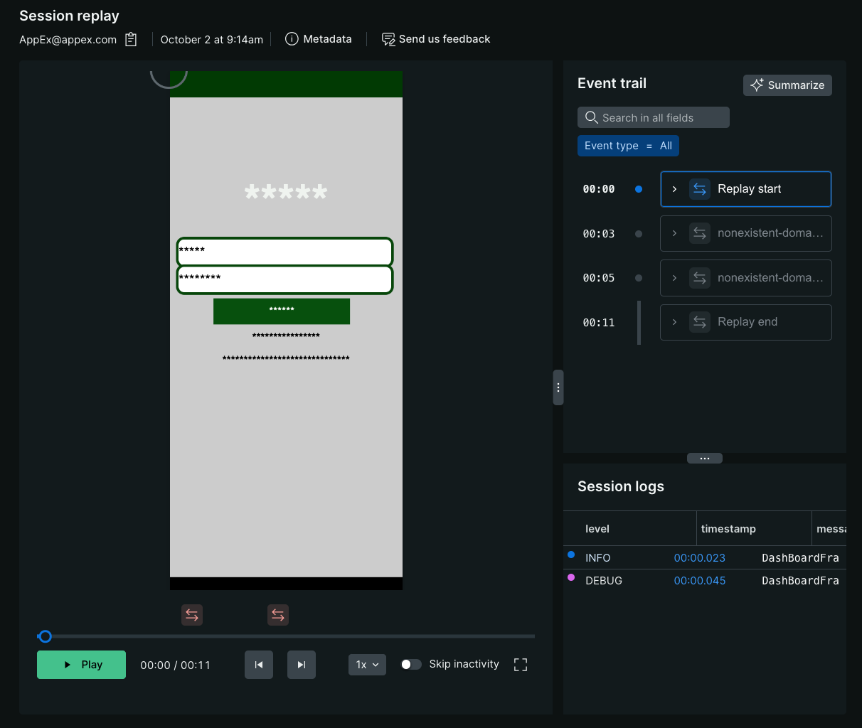 Why spend hours trying to reproduce elusive mobile app bugs when you can see exactly what your users experienced? Mobile Session Replay eliminates the guesswork in troubleshooting by providing a video replay of what the end user saw on their phone or tablet, synchronized with all the telemetry data from that session. This means you can quickly assess the real impact of errors on your users, identify performance bottlenecks and UX friction points, and resolve issues faster without relying on bug reports or local reproduction.