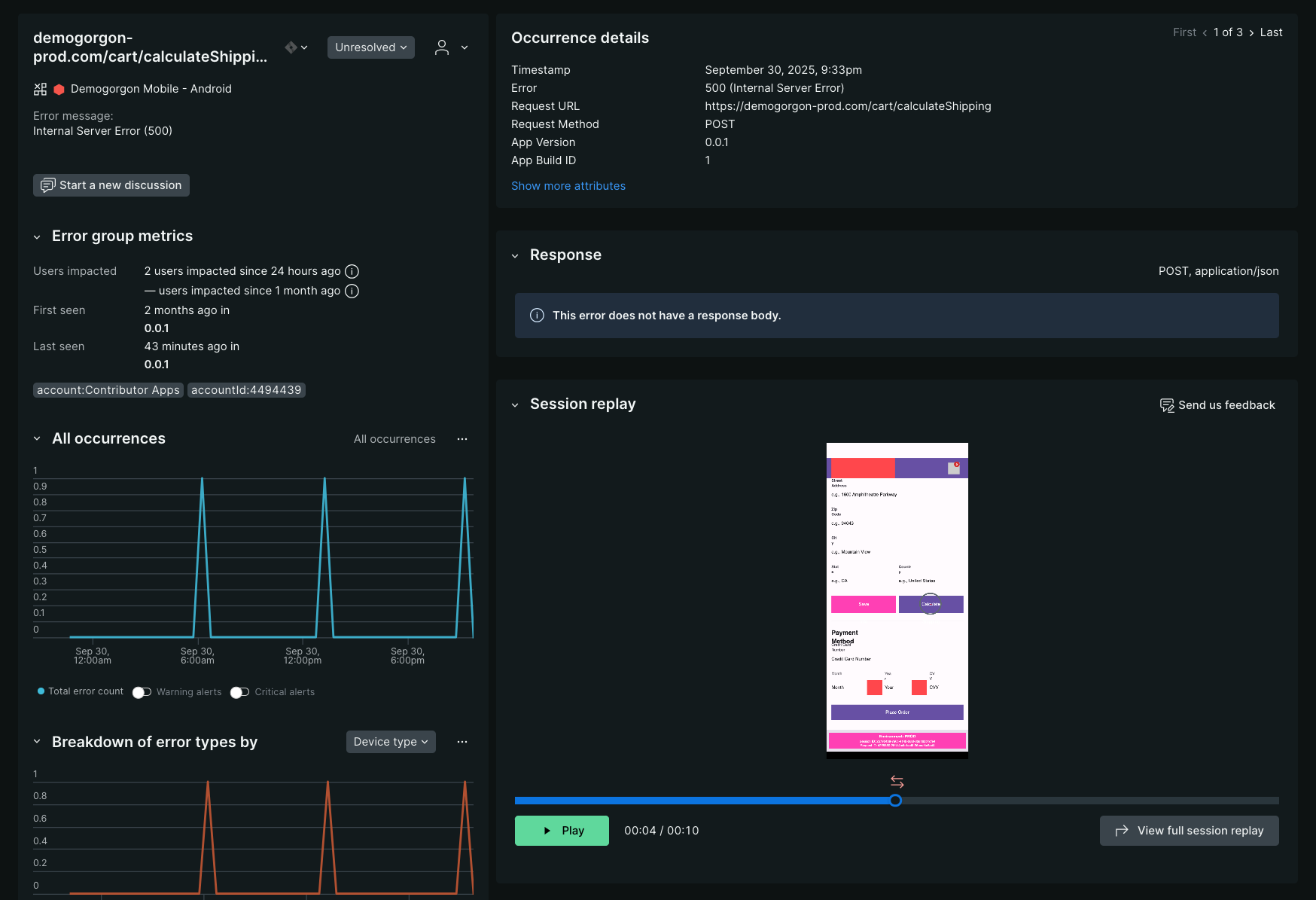 Preview: Replays will be available in context in the Crashes, Request errors, Handled exceptions, and ANR experiences.